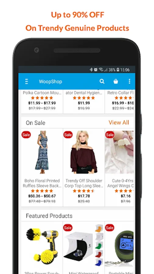 WoopShop the mobile shopping app that lets you shop genuine products with discounts Up to 90% OFF and offers you product under $0.99.