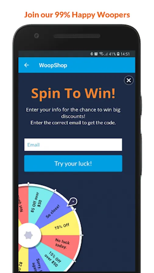 Spin to win a free coupon instantly and save more on your purchase.