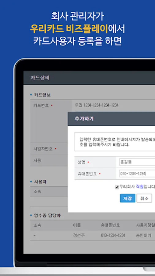 ※ This is an app that can be used by companies that have joined our corporate Bizplay (wooricard.bizplay.co.kr).