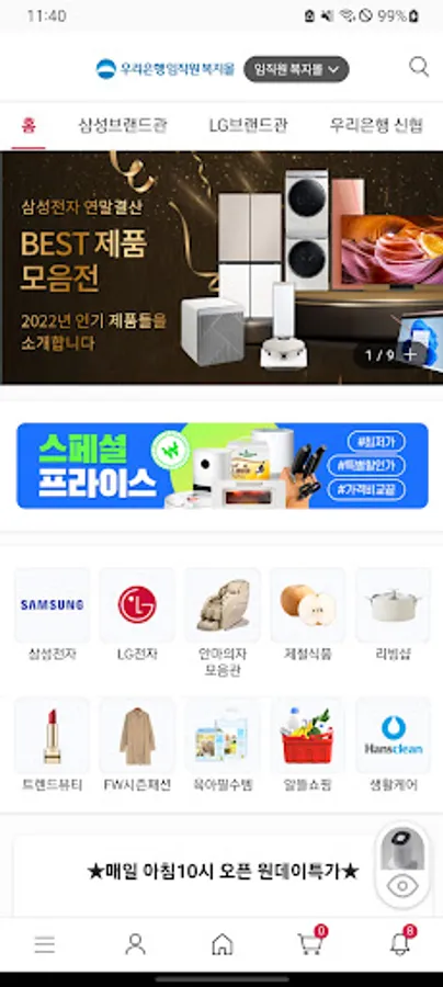This is 'Woori Bank Employee Welfare Mall' that provides special product sales and affiliate services.