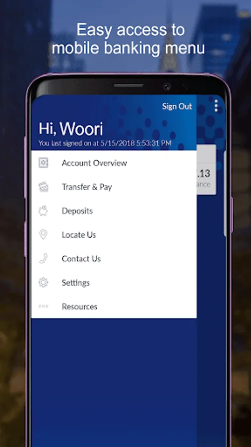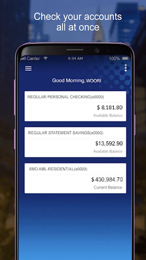 Access your account from anywhere with Woori America Bank Mobile Banking app. Manage your accounts, transfer money, pay bills, deposit checks, all safely and conveniently with your phone.