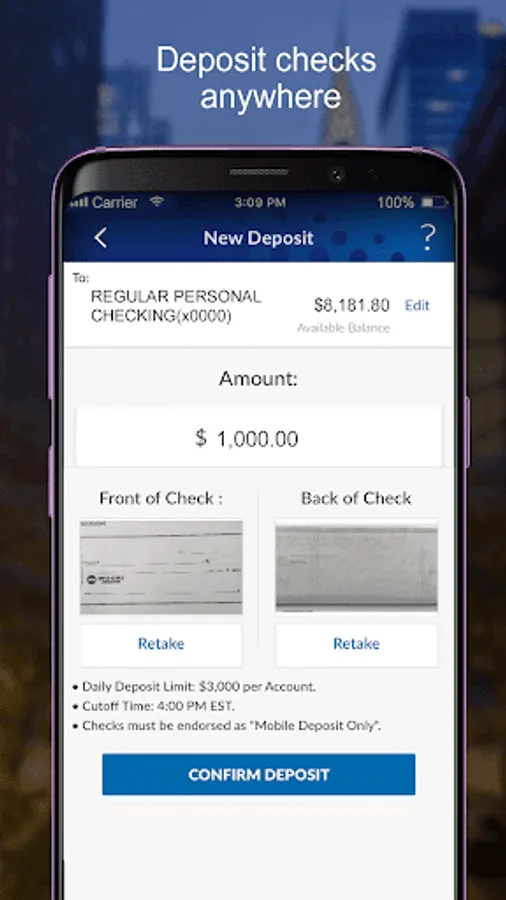 ∙ Take a picture and deposit checks.