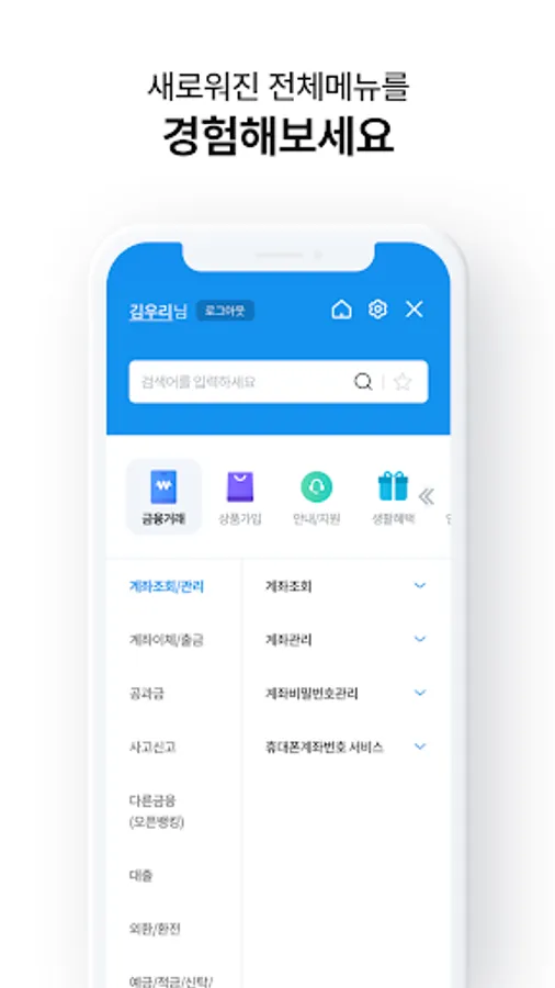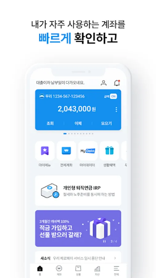 Introducing Woori Bank's 「Woori WON Banking」, which has been renewed with the reorganization of the home screen.