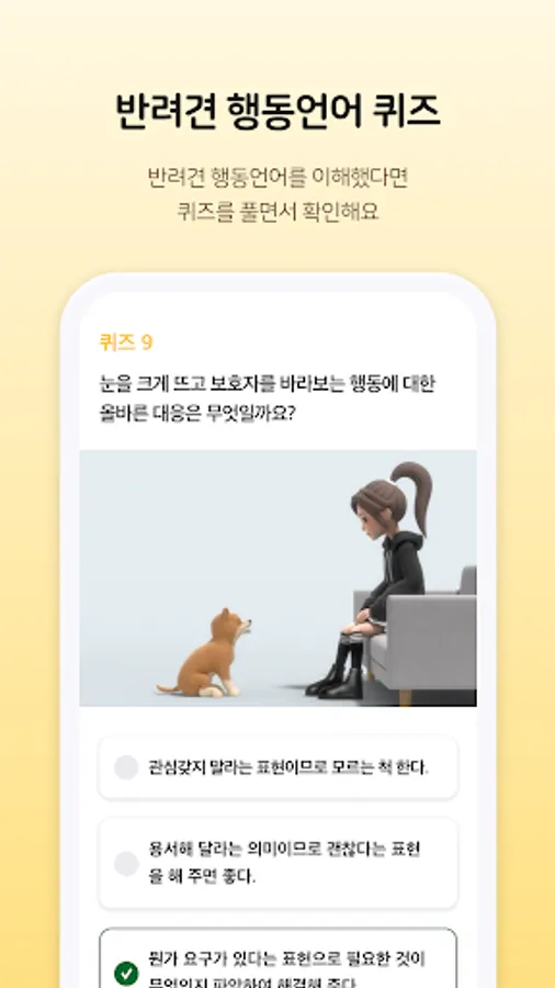 While studying the dog behavior language step by step, solve the beginner > intermediate > advanced quiz and become a behavior language master.
