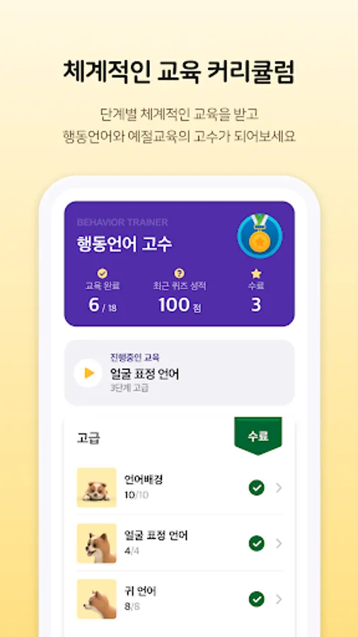 If you complete the dog behavioral language training, you can get the behavioral language beginner > expert > expert medal.