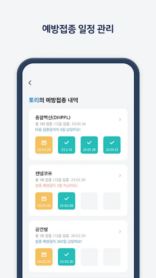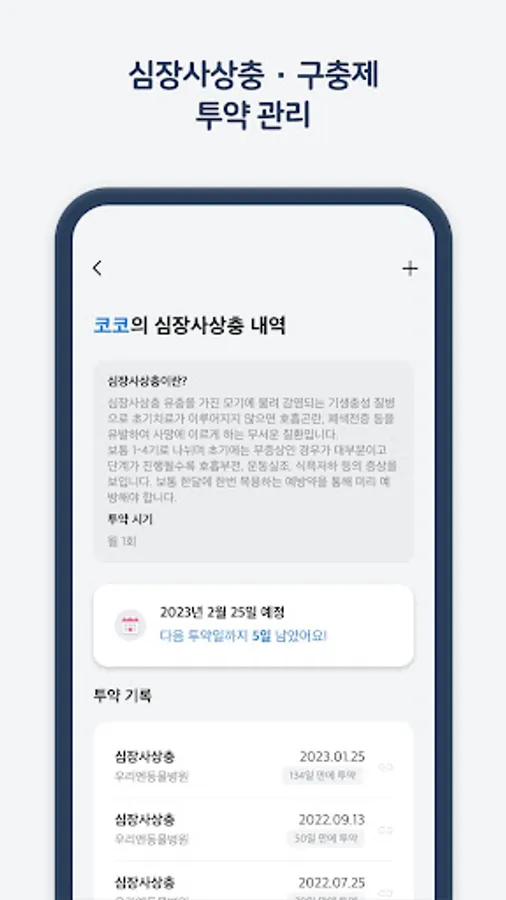 History of veterinary hospital visits, weight information, vaccination history, anthelmintic medication history and until the next scheduled date