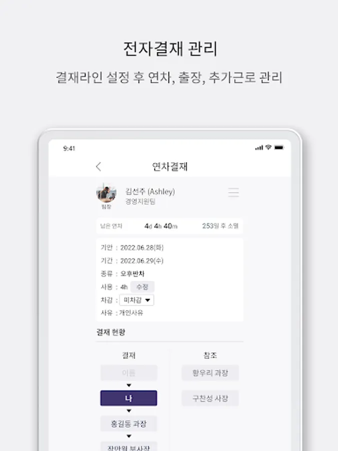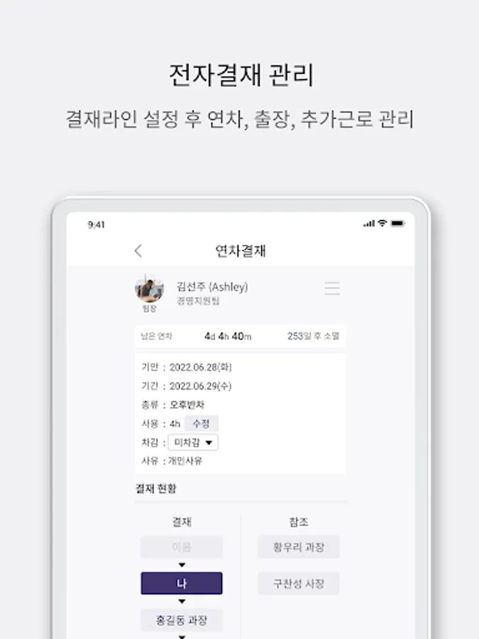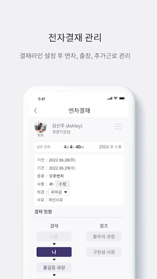1. Annual leave / business trip / overtime & weekend work e-approval in the app