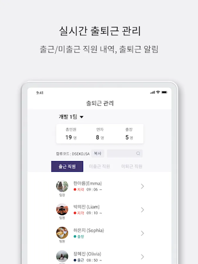 2. Enter the company joining code (ask the manager)