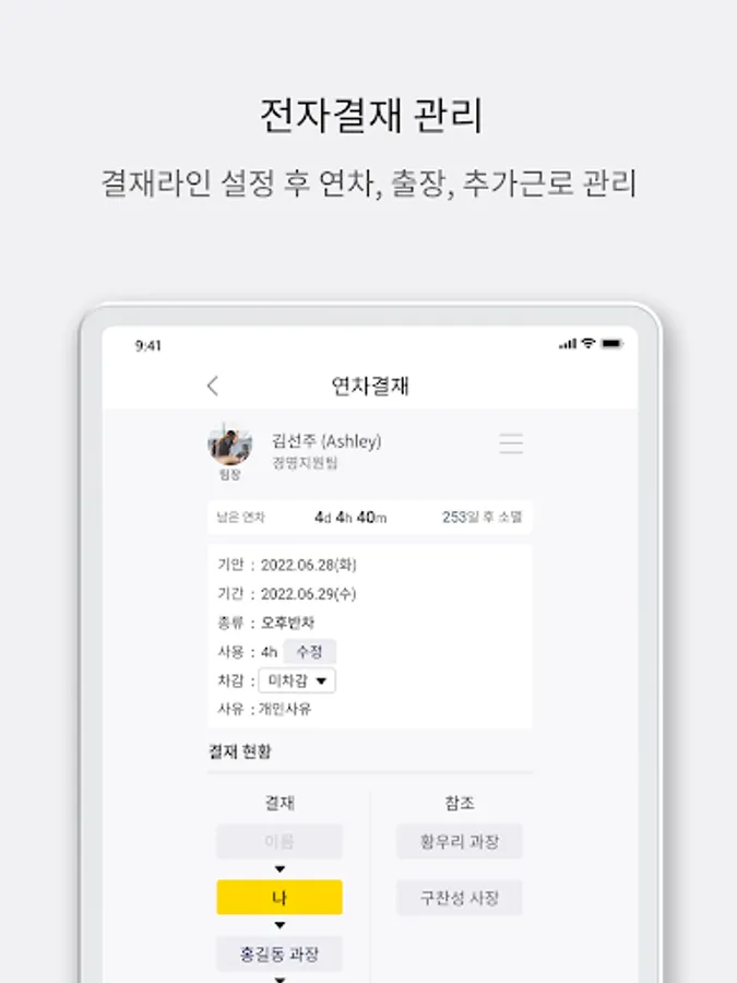 1. Annual leave / business trip / overtime & weekend work e-approval in the app