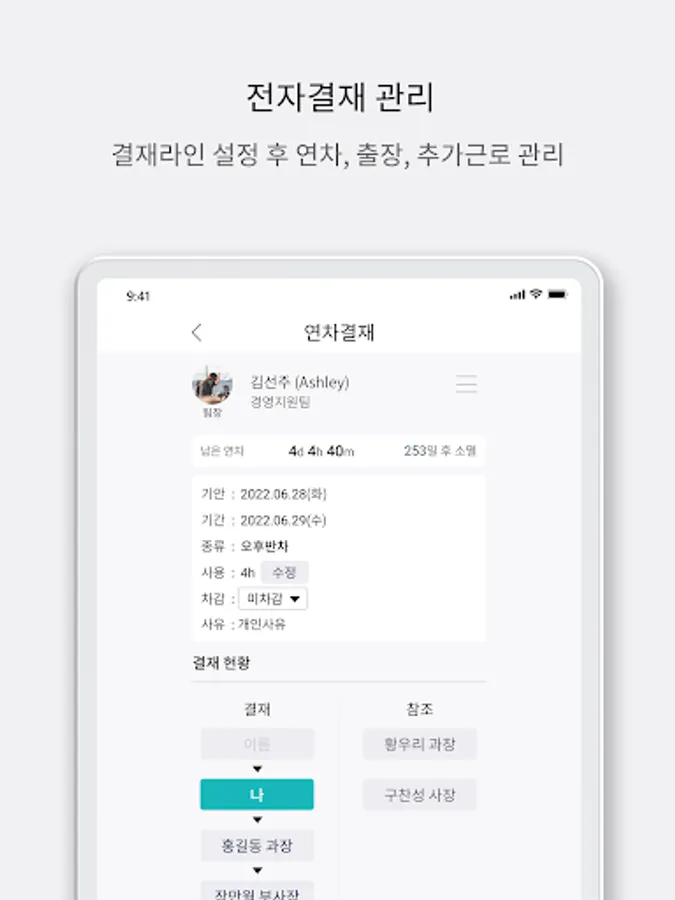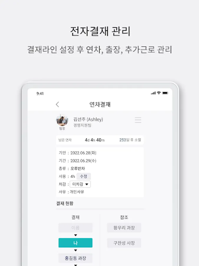 1. Annual leave / business trip / overtime & weekend work e-approval in the app