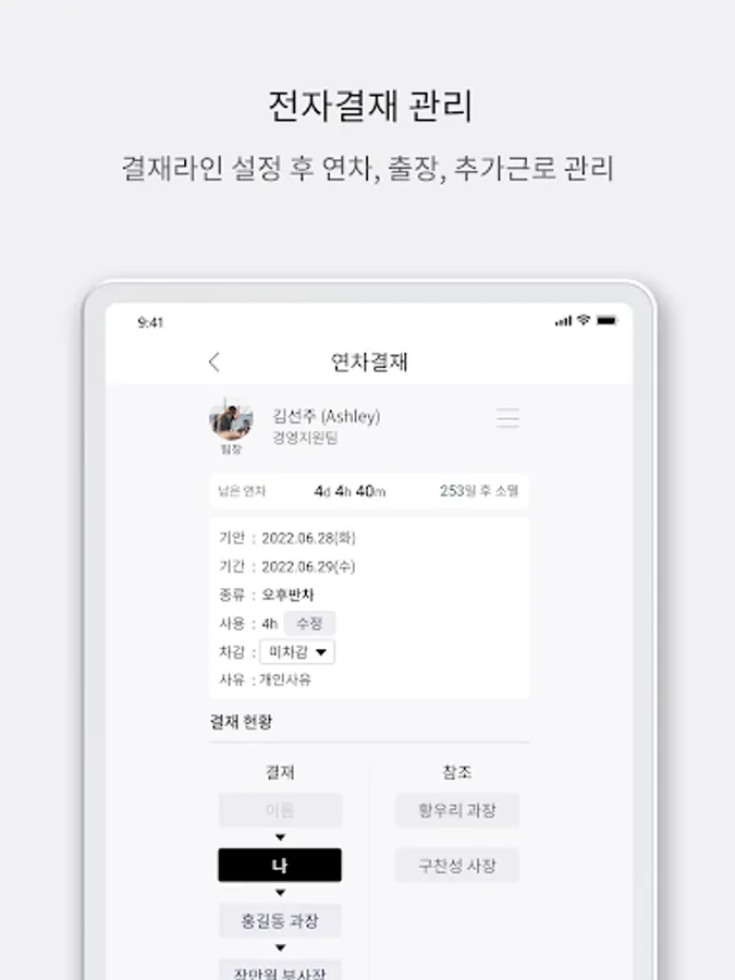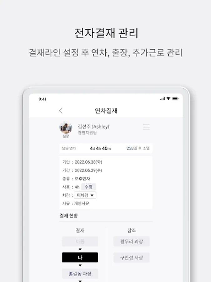 1. Annual leave / business trip / overtime & weekend work e-approval in the app