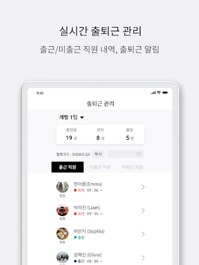 2. Enter the company joining code (ask the manager)