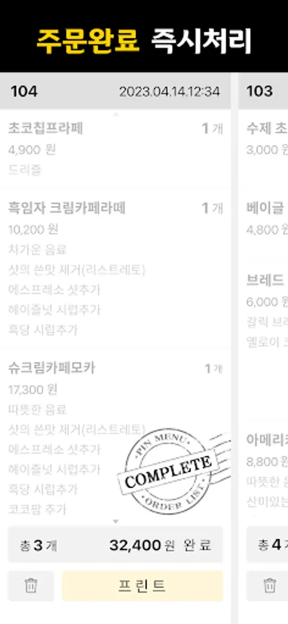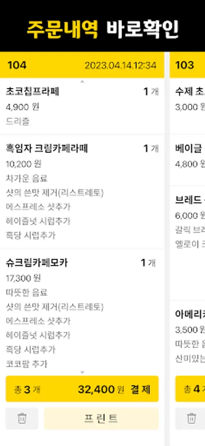 - Order details printing: Order details can be printed with a printer designated by the pin menu