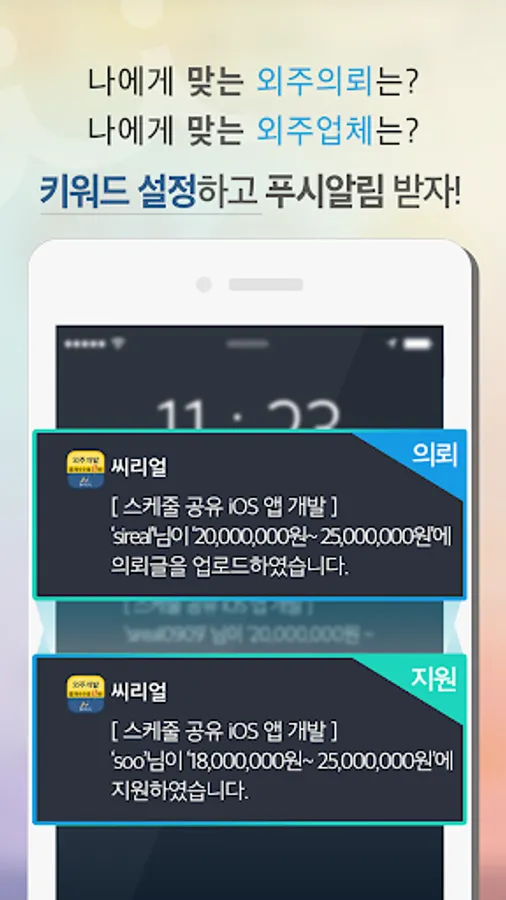 1. 내가 등록한 외주의뢰에 지원이 있으면 푸쉬알림으로 바로바로 확인