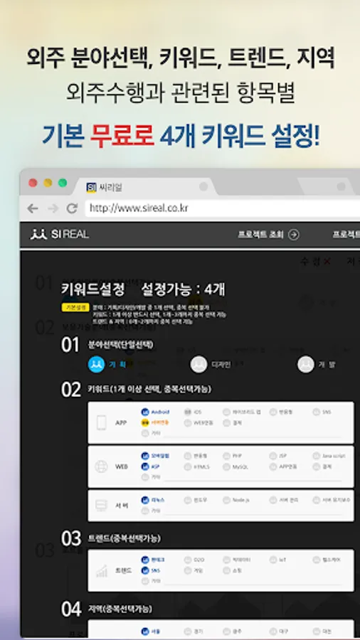 외주업체는 자신 있는 분야로 지원가능하고 SI파트너스 등록 시, 더 좋은 프로젝트 수주 가능!