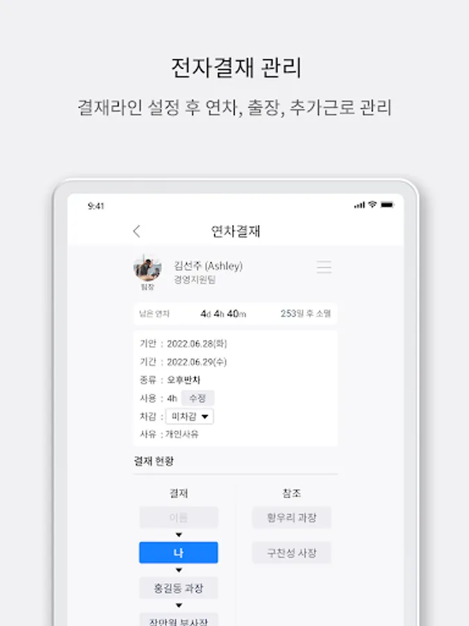 1. Annual leave / business trip / overtime & weekend work e-approval in the app