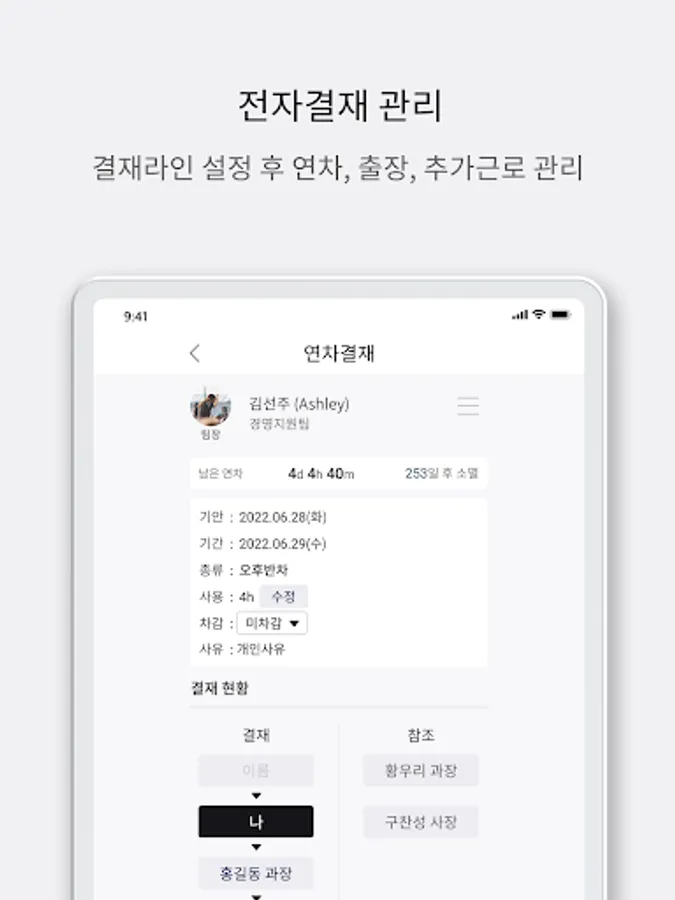 1. Annual leave / business trip / overtime & weekend work e-approval in the app