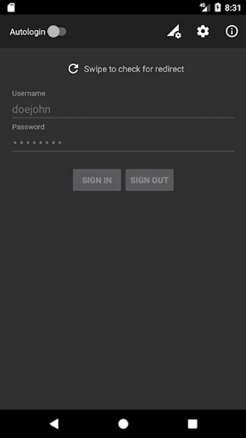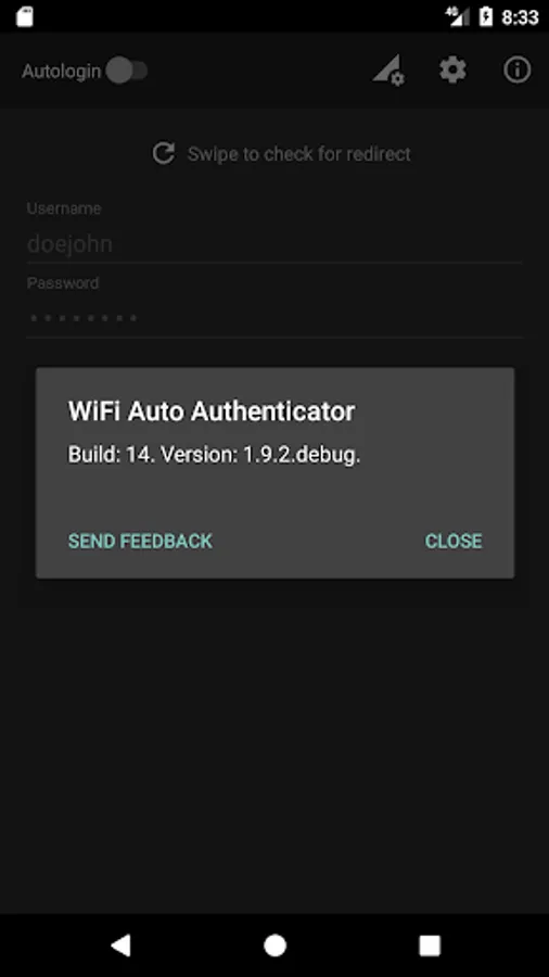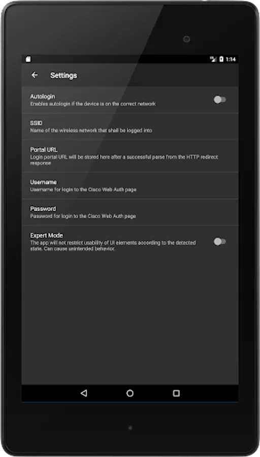 This app stores the Web Auth portal password in plain text because it is then sent in the HTTP request during automatic login procedure. Be aware that the HTTP requests do not have to be secure if the Web Auth is running on un-encrypted HTTP. This app does not validate the server SSL certificates.