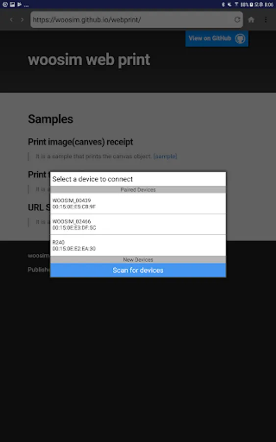 WSWebPrint is an application that allows you to print receipts and images written in javascript on a mobile thermal printer, via Blutooth interface.