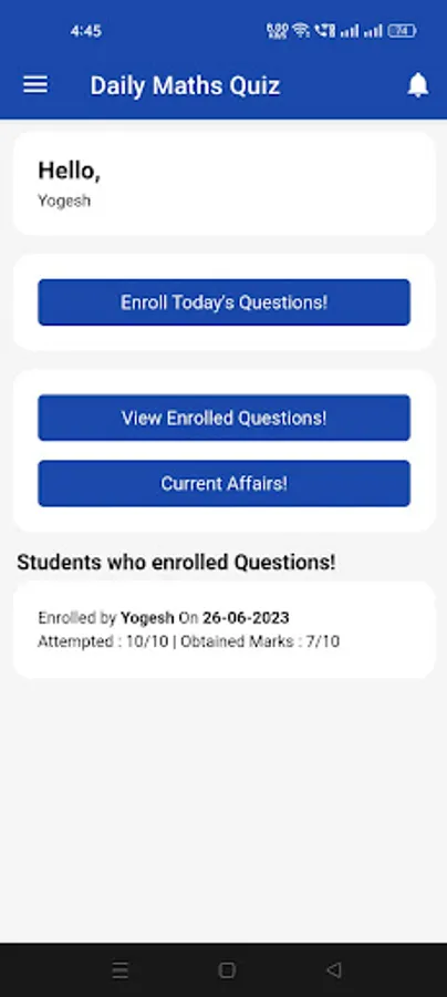 It will create Exam per day while you click on Enroll Todays Question, then you can give a free online test and check your result with analysis and solutions.