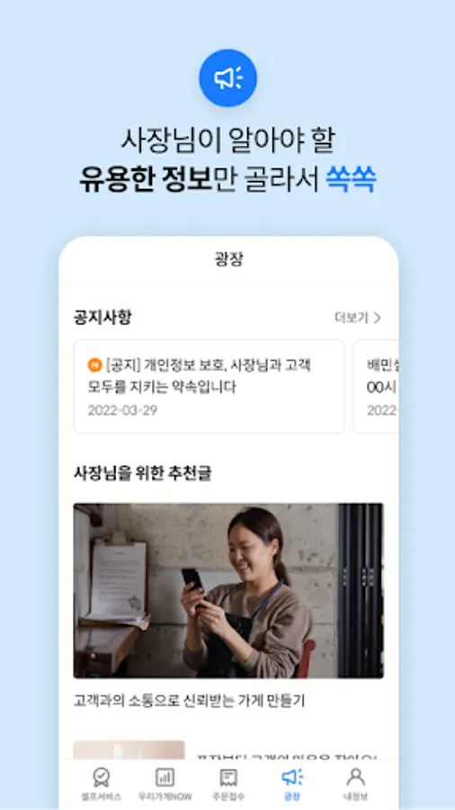 -Select only the useful information that the bosses need to know, and select it from the square menu of the Baemin boss app