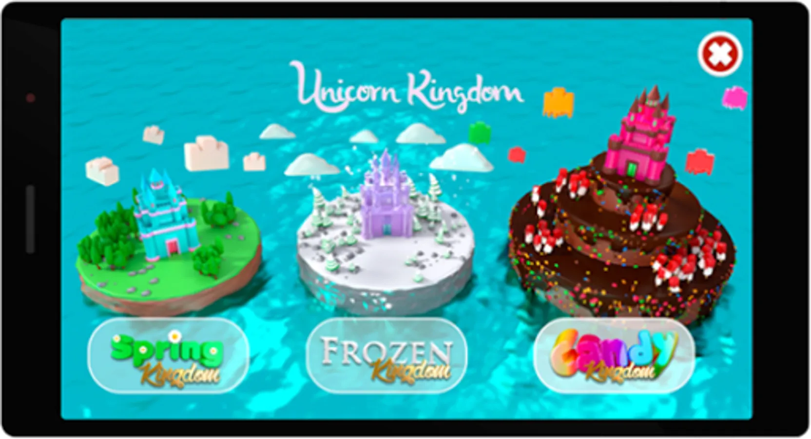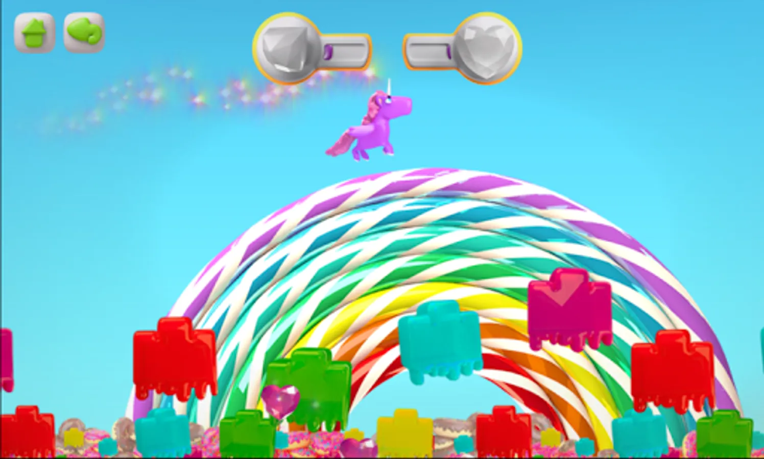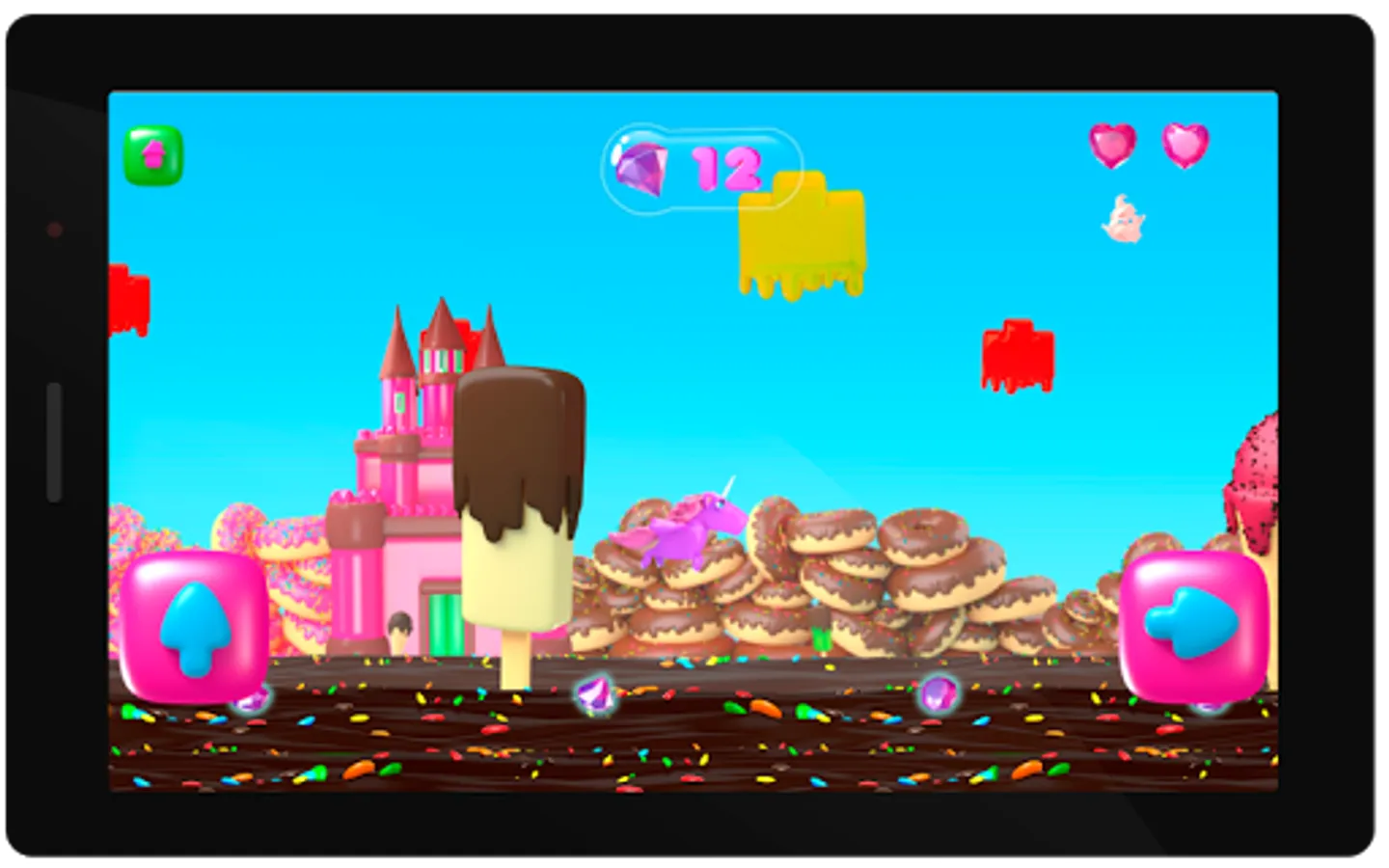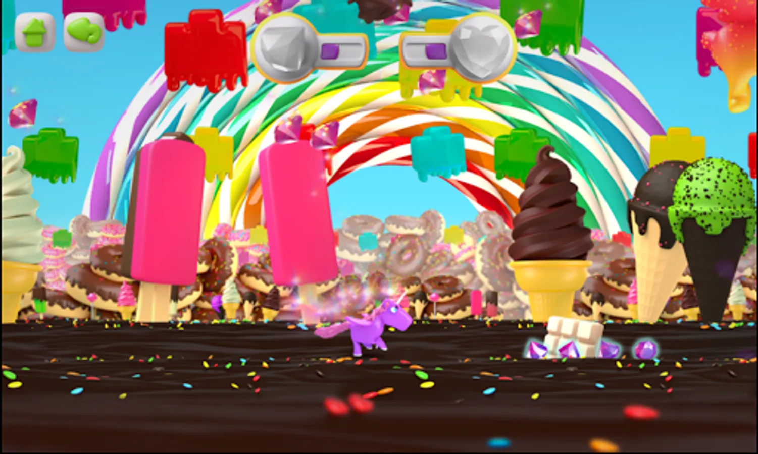 Delicious chocolate covered ice cream and trees , runs through the magical kingdom galloping and flying in your little unicorn to find all the lost magical gems