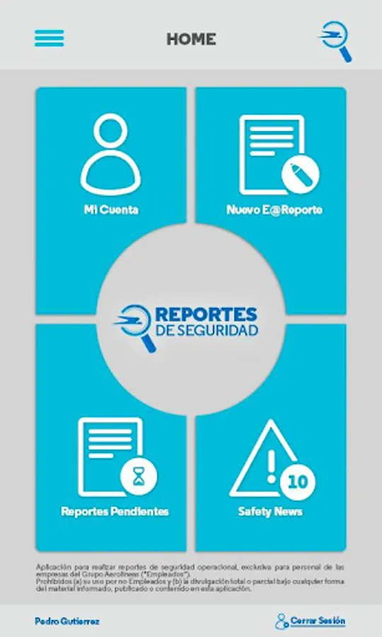 Application for safety reports exclusively for company personnel Airlines Group ( "Employees").