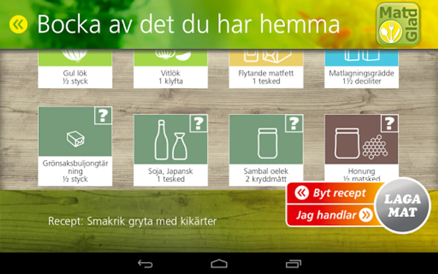 APPETITE want to appetite and enjoyment of food - for any occasion! The app presents all recipes with delicious pictures of the dishes. The recipes are divided into different categories so it should be easy to find the right. There are categories for fish, meat, vegetarian, soups, friday, utflyktsmat and more.