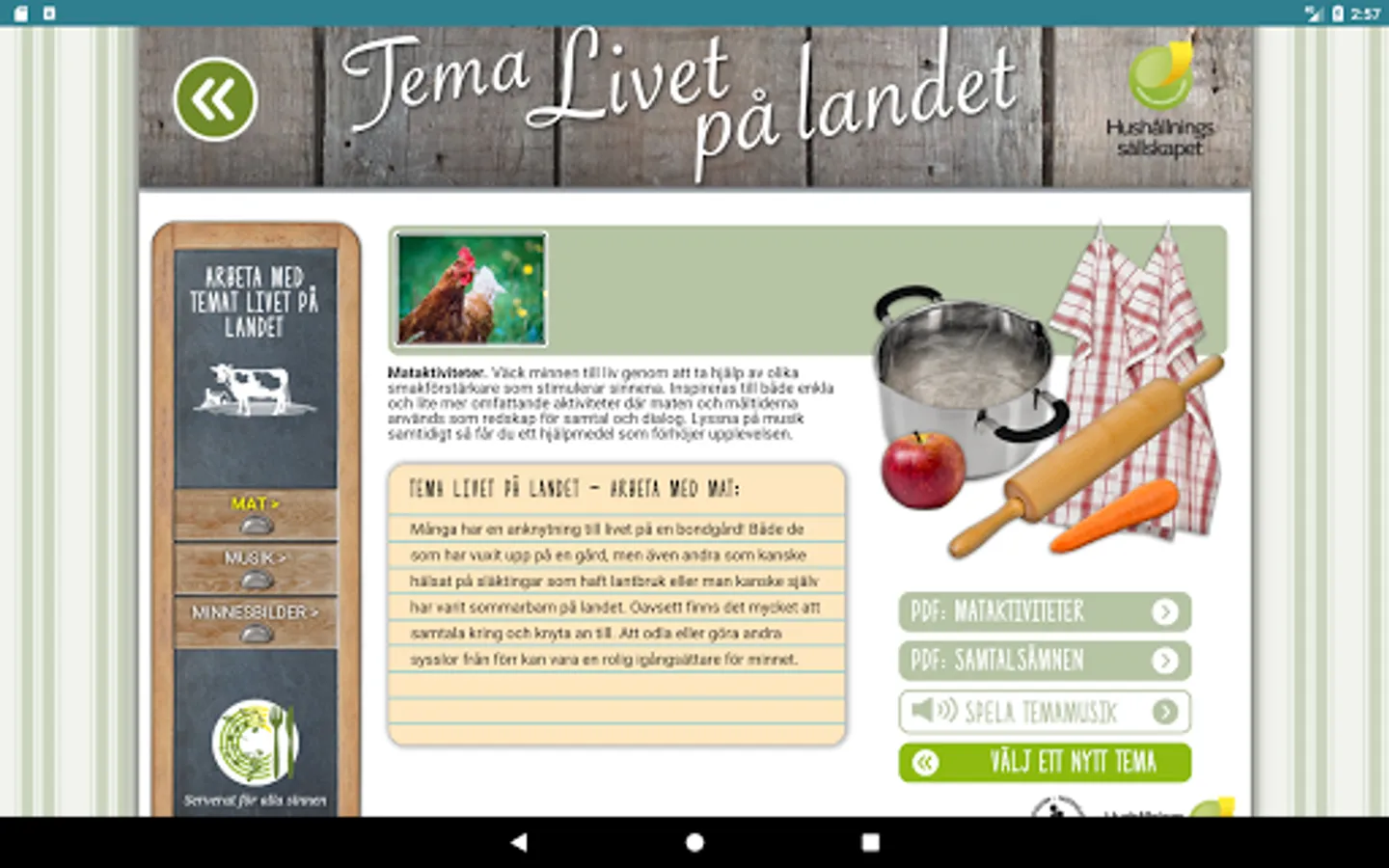 The app Food-Music Memories has been developed by Agricultural Society West in cooperation with Dementia Association and the elderly in Alingsås and Kungälv.