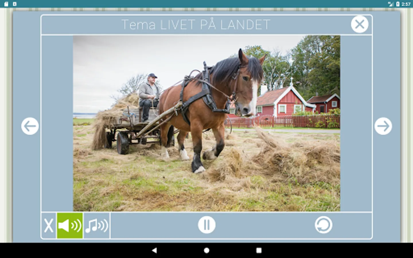 Each theme contains three headings. Under the heading "Food" are things you can practically do together to enhance the theme's content. Under the heading "Music" is specially composed pieces of music or sound backdrop that alludes to the theme. Under the title "Memories" is about 1,000 photographs from different periods related to the different themes. The pictures are tiny time capsules that can avlockas a story. The right questions, many memories come to the surface, the app includes tips on how to get there.