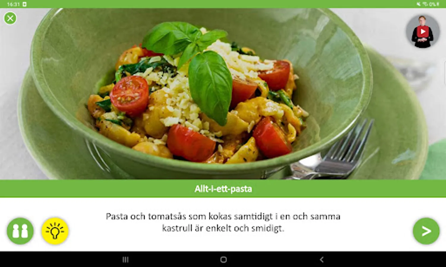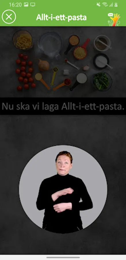 The recipe app step-by-step with pictures, videos, speech and THANKS signs as alternative supplementary communication!