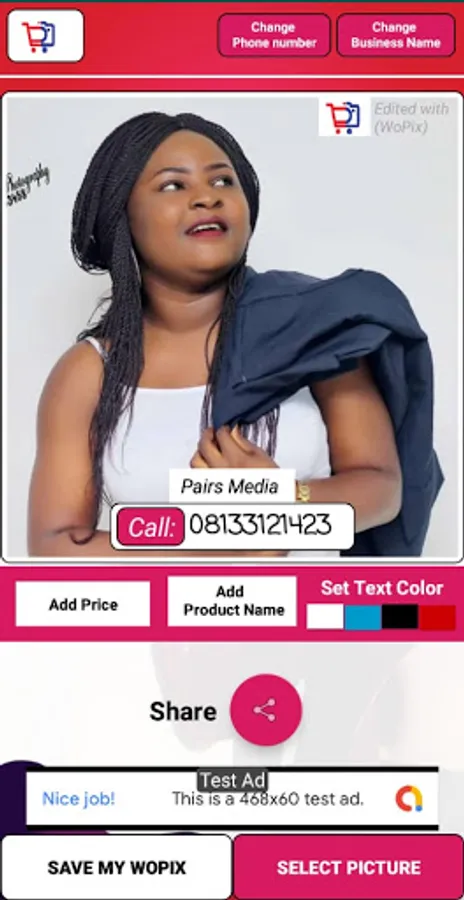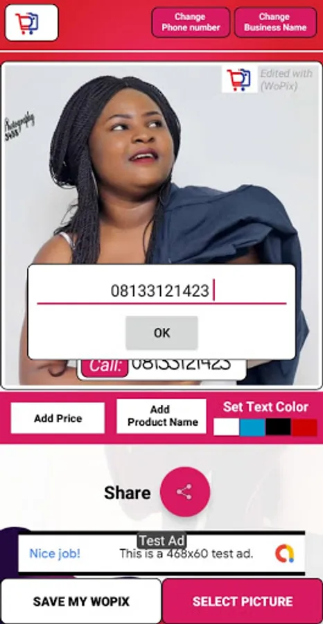 ✔ Add Phone Number. You can easily add phone number to your picture and share with your friends and family and also share with your customers.