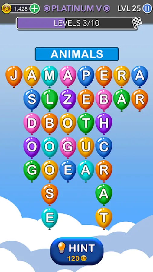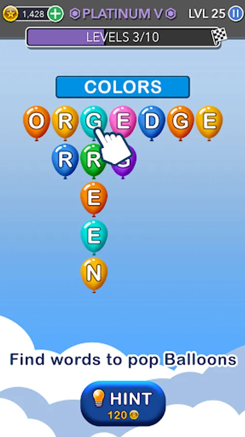 - Connect letters on balloons in any direction to form the hidden word matches!