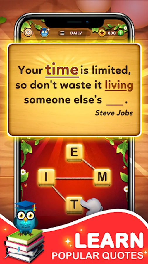 The game features a simple and intuitive gameplay, where players need to swipe and connect letters to form words. The longer the words, the higher the score. There are also special bonus tiles that can multiply the score, making the game even more exciting.