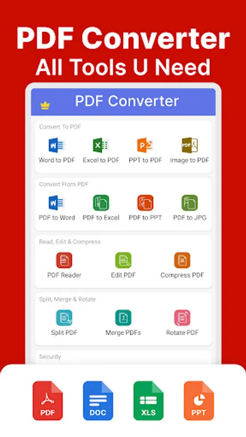 - All in one document reader: PDF, DOC, DOCX, XLS, PPT, TXT files from internal storage, email, cloud, web and external storage.