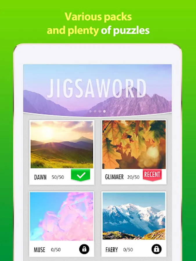 • Mix word search and jigsaw to create a brand new gameplay.