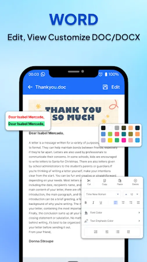 ๐ Edit Word Files: Seamlessly edit both Docx and Doc files with precision. Our intuitive interface ensures a hassle-free editing experience, allowing you to make quick changes on the go.