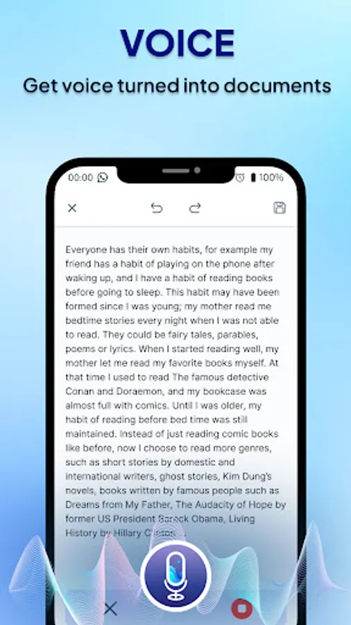 โก Speed to Text: Experience lightning-fast text entry and modification, ensuring that your editing process is both efficient and time-saving. Save your documents effortlessly in Docx or Doc format.
