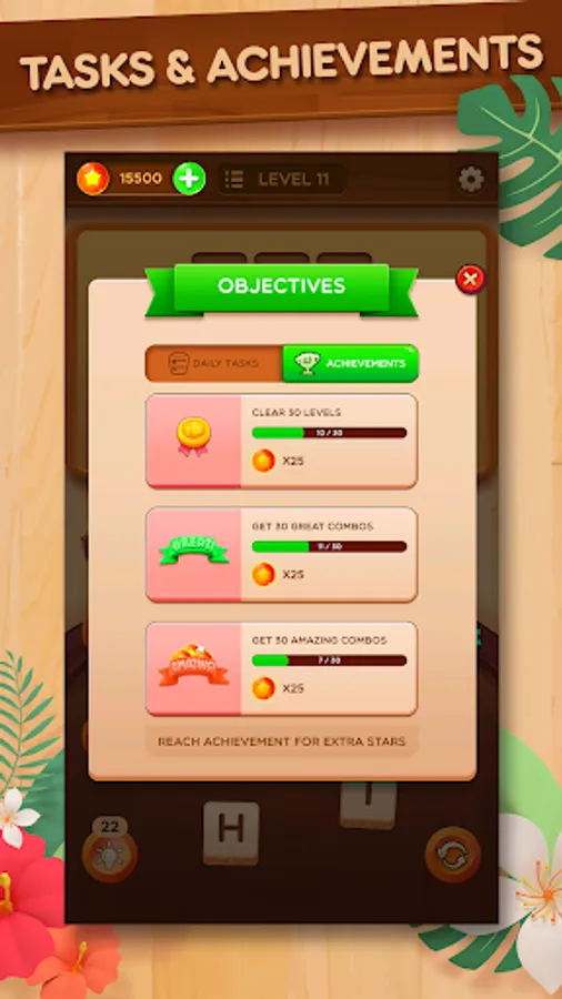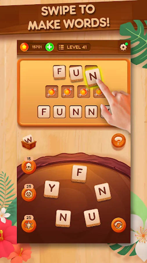 • Find as many words as possible to unlock levels and earn bonus coins.
