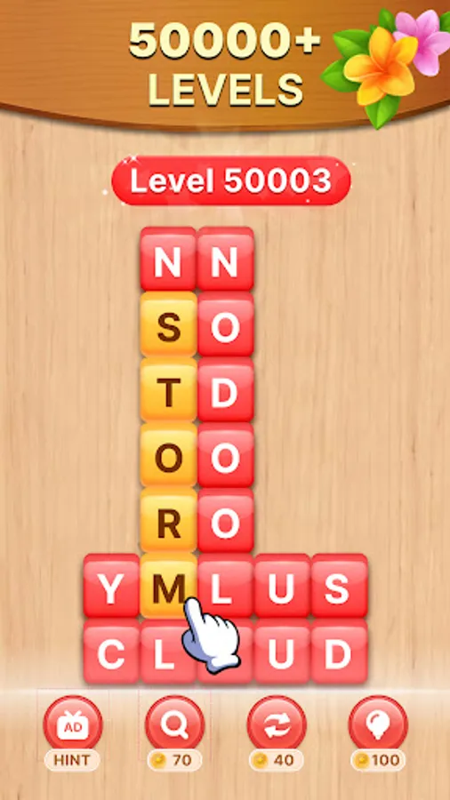 - Swipe fingers to connect the block and transform random letters into words.
