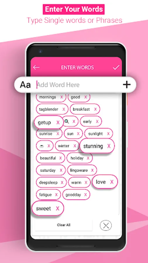 • You can create different word color pallet: you may edit them and save them in your phone.