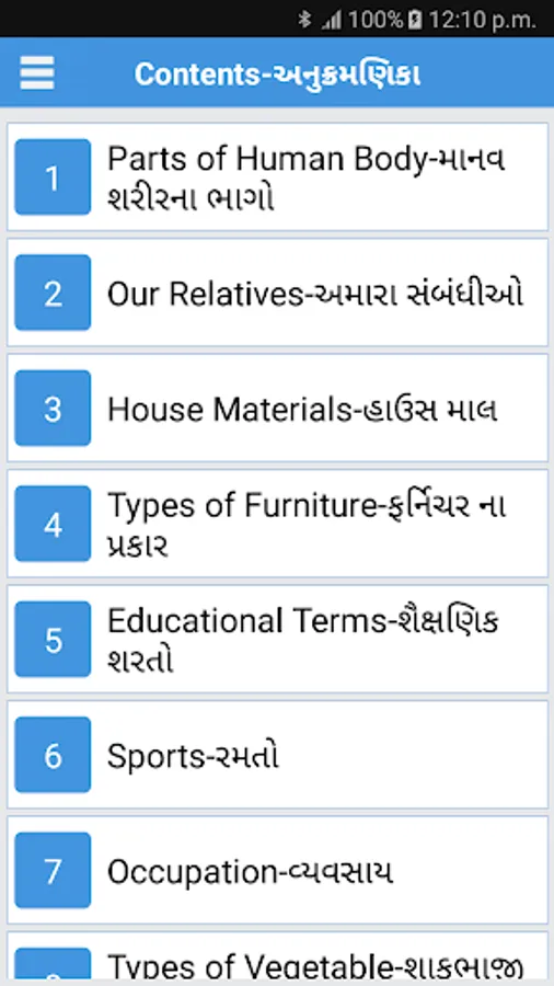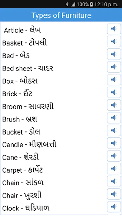 This English to Gujarati Daily words with sound help you to learn English.This Daily words also help to learn English to Gujarati Translation .Here you also get daily necessary vocabulary .