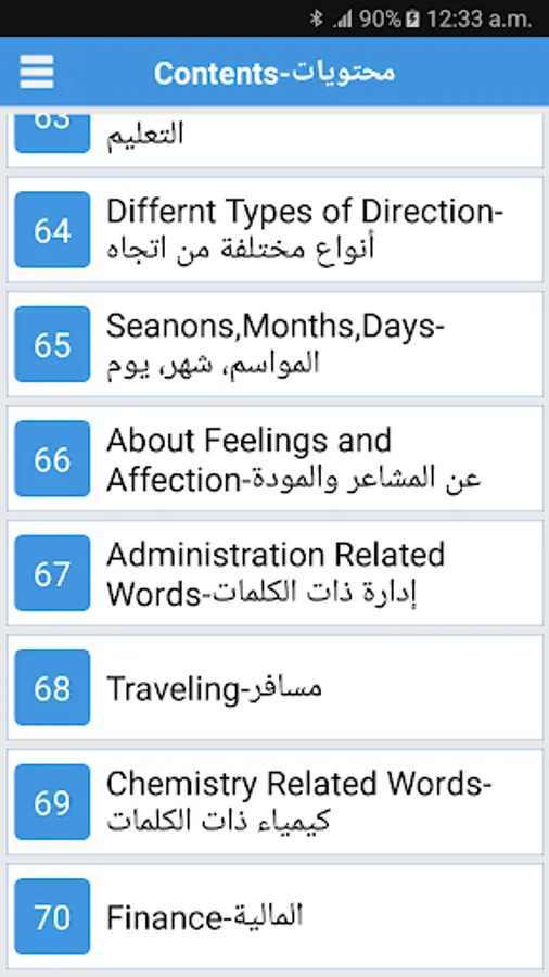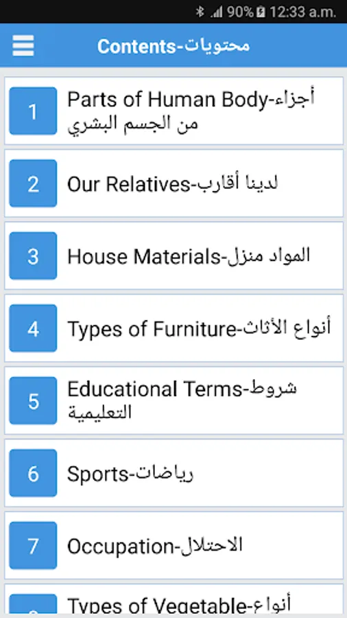 This English to Arabic Daily Words with sound help you to learn English. This Daily Words also help to learn English to Arabic Translation and spoken in English. Here you also get most common daily necessary vocabulary.