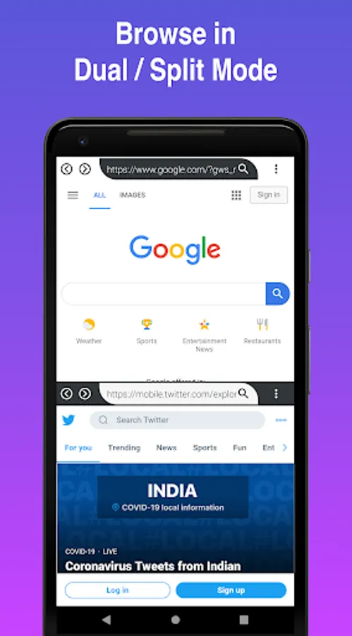Parallel Browser is a Split / Dual Browser which assists you in fast browsing. You can easily multi task with the help of dual browser.