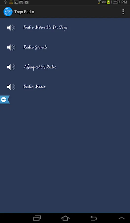 Tune in to Radio Merveille Du Togo, Radio Gameli, Afrique365 Radio, RFI Afrique, RFI Monde, Radio Maria, Radio Bonne Nouvelle and Radio SPORT FM radio stations from Togo to listen live broadcasting of live news, talk shows and togolese music on the go. This app provides you optimized and rich audio streaming of live broadcast continuously with mp3 audio live streaming. Enjoy listening best music and shows on the go...