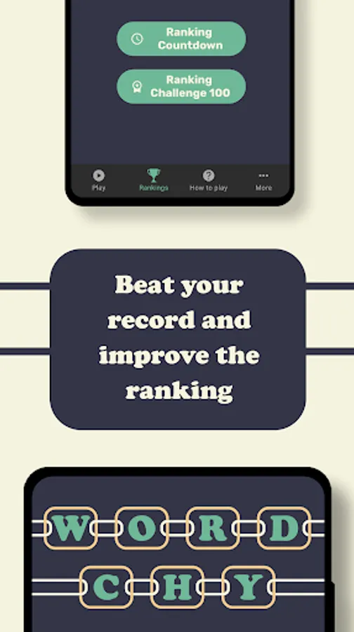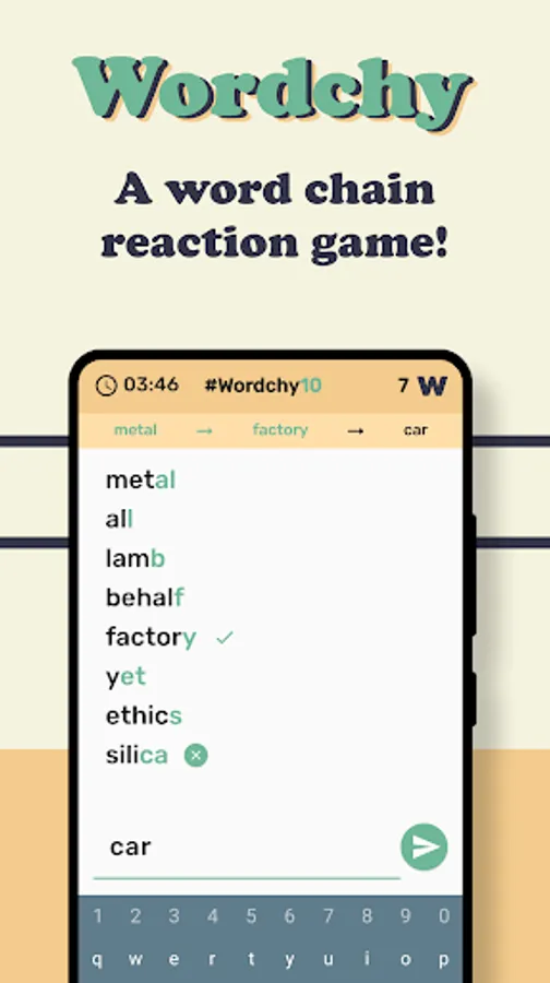 Word Chain is a chain reaction word game where you'll try to build as many chained words as possible, the classic word play to improve vocabulary! Train your brain with words as you do in games as Wordle, Word collect, Word connect or others word play games, this word collect game is made for you to enjoy and improve vocabulary at the same time π€