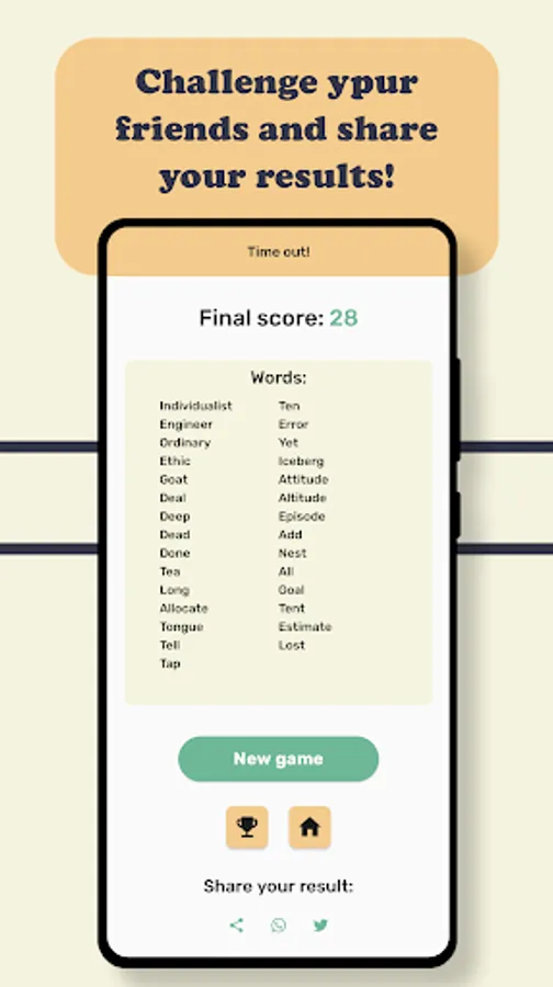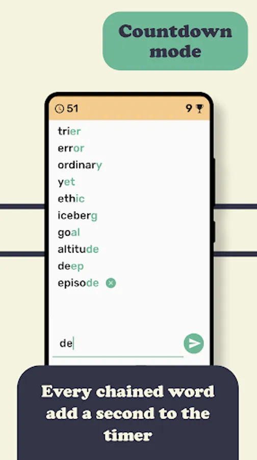β° Countdown: Add as many words as you can before the 60s countdown finishes to create the longest word chain ever.