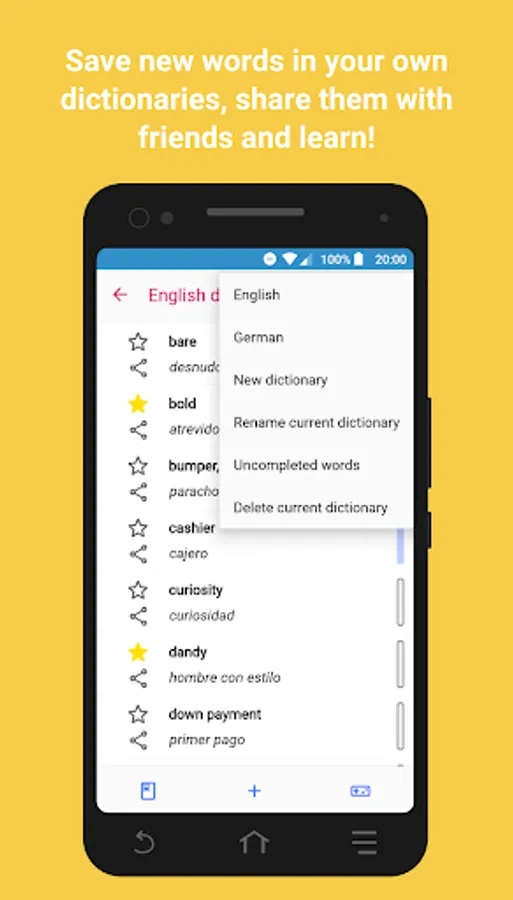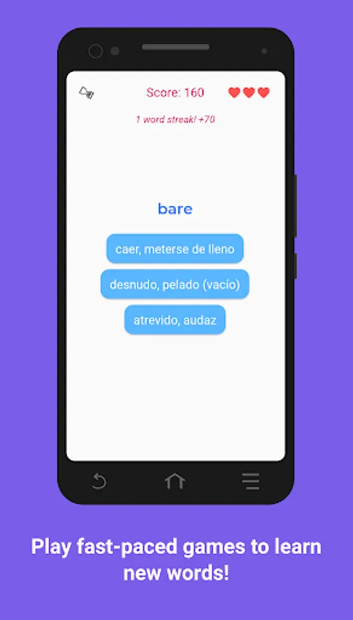 You also have games to memorize new words! The app includes other useful features like Favorite words, Share words, etc. Of course, it works offline!