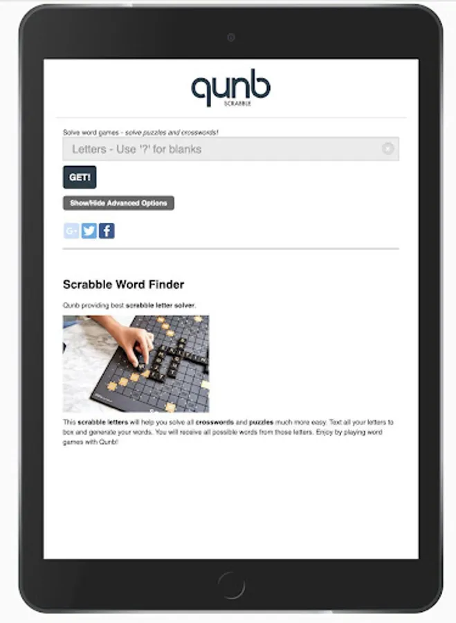 Qunb is one of the most popular puzzle game solver website which visits by millions people. Qunb team developed a puzzle solver appfor puzzle lovers. In this tool you can enter letters up to 16 letters and can generate possible words.