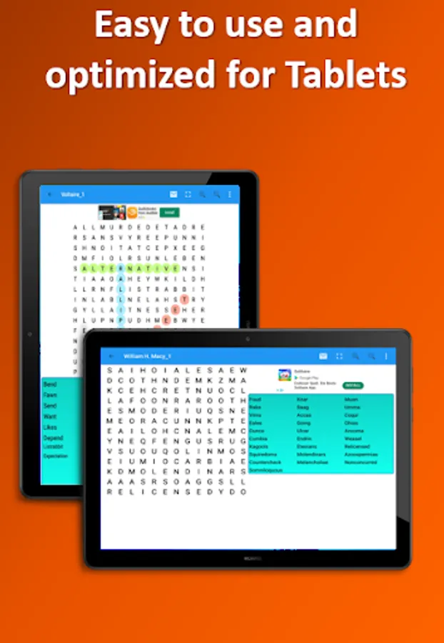 💥 Very convenient word search puzzles for everyone: You can play it with your device, wherever you are, also offline, without carrying paper and pencil